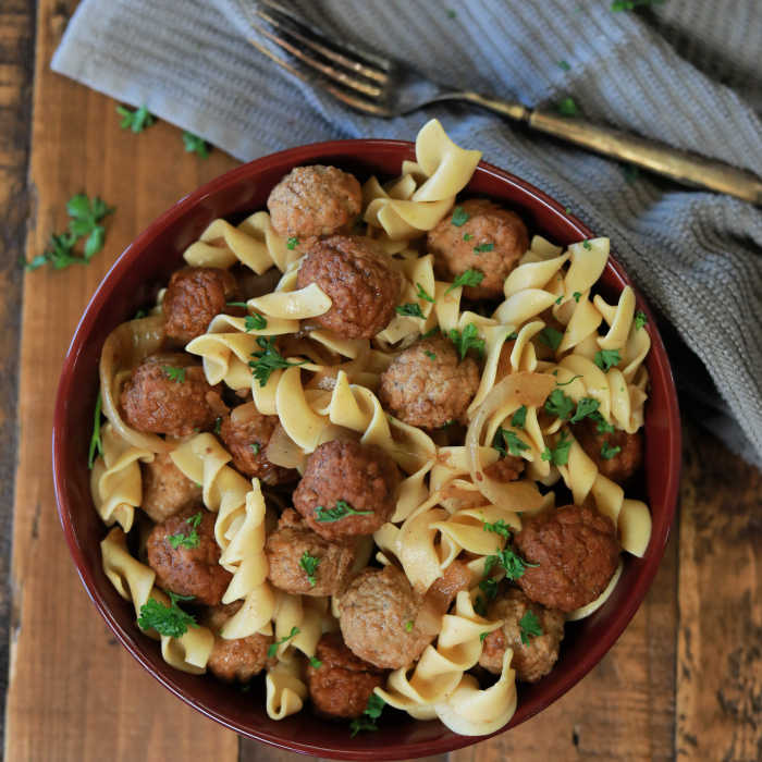 Crock Pot French Onion Meatballs with Noodles